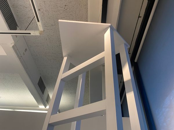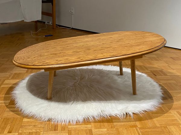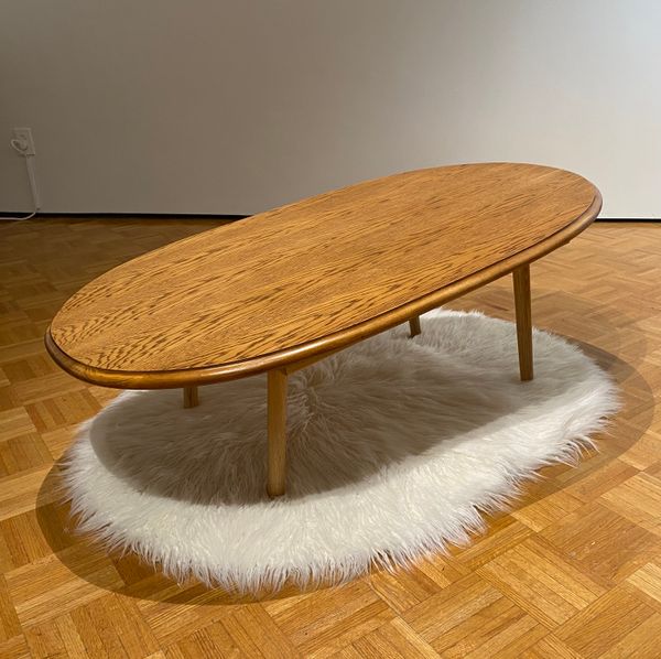 i had a martini in my dream, 2025. Tabletop, legs, wood, glue, screws, varnish.