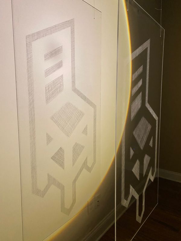 the sincerest form of flattening, 2022. Acrylic sheet etched by hand, projected with a spotlight.