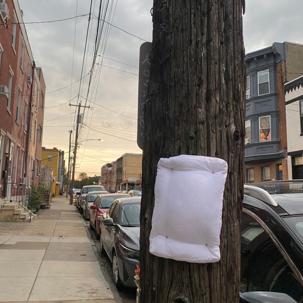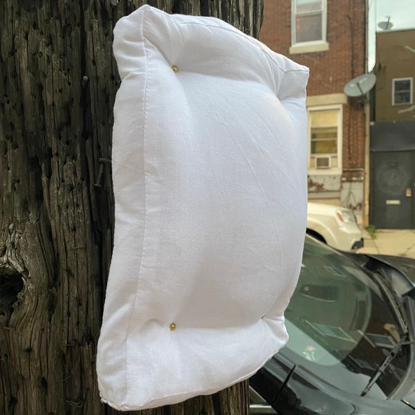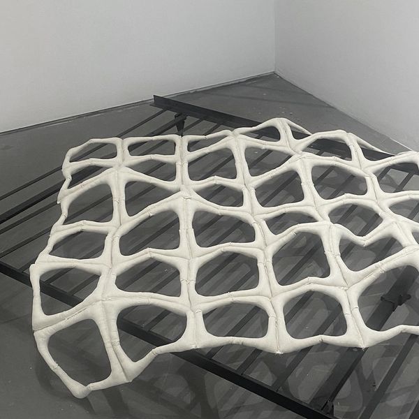 absence, 2025. Fabric, polyfill, thread, and nails.