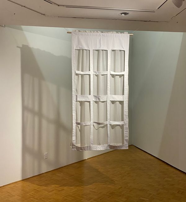 transparent, 2025. Blackout curtain, sheer curtain, glue.
